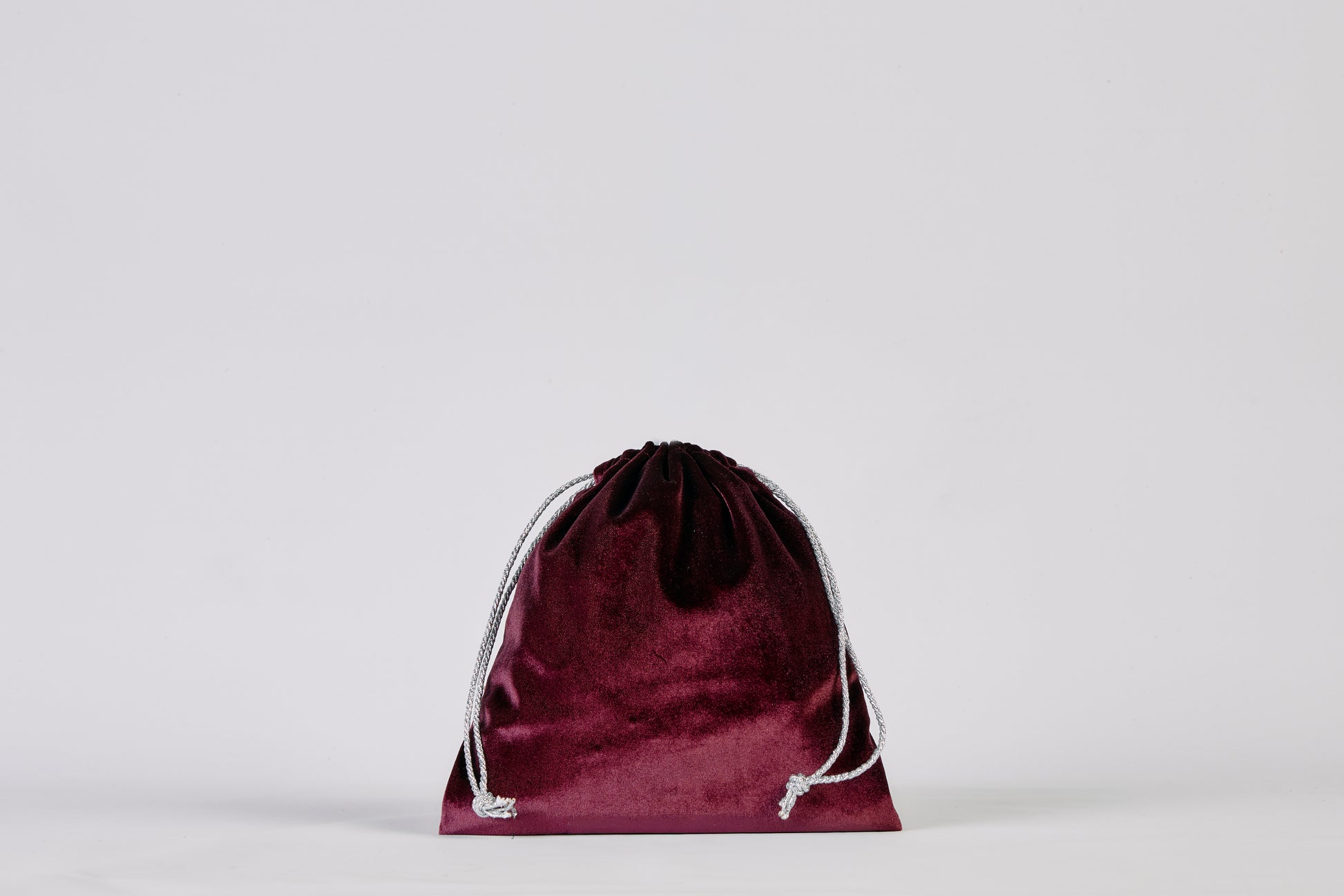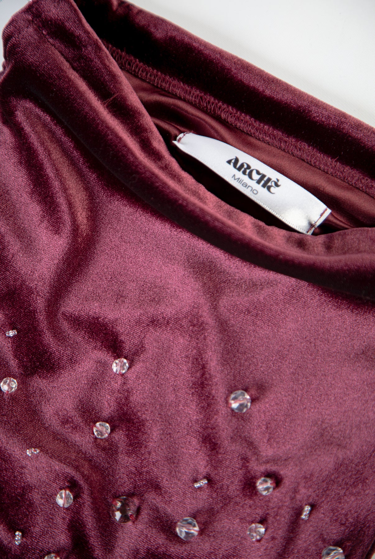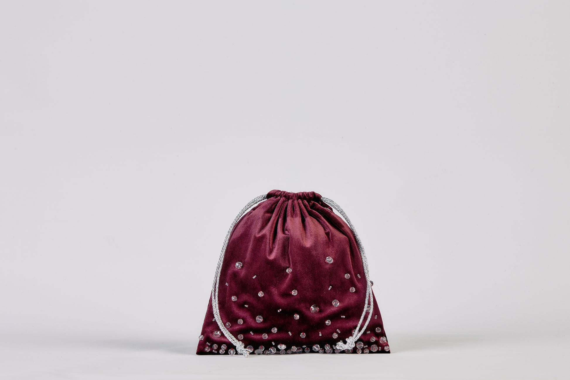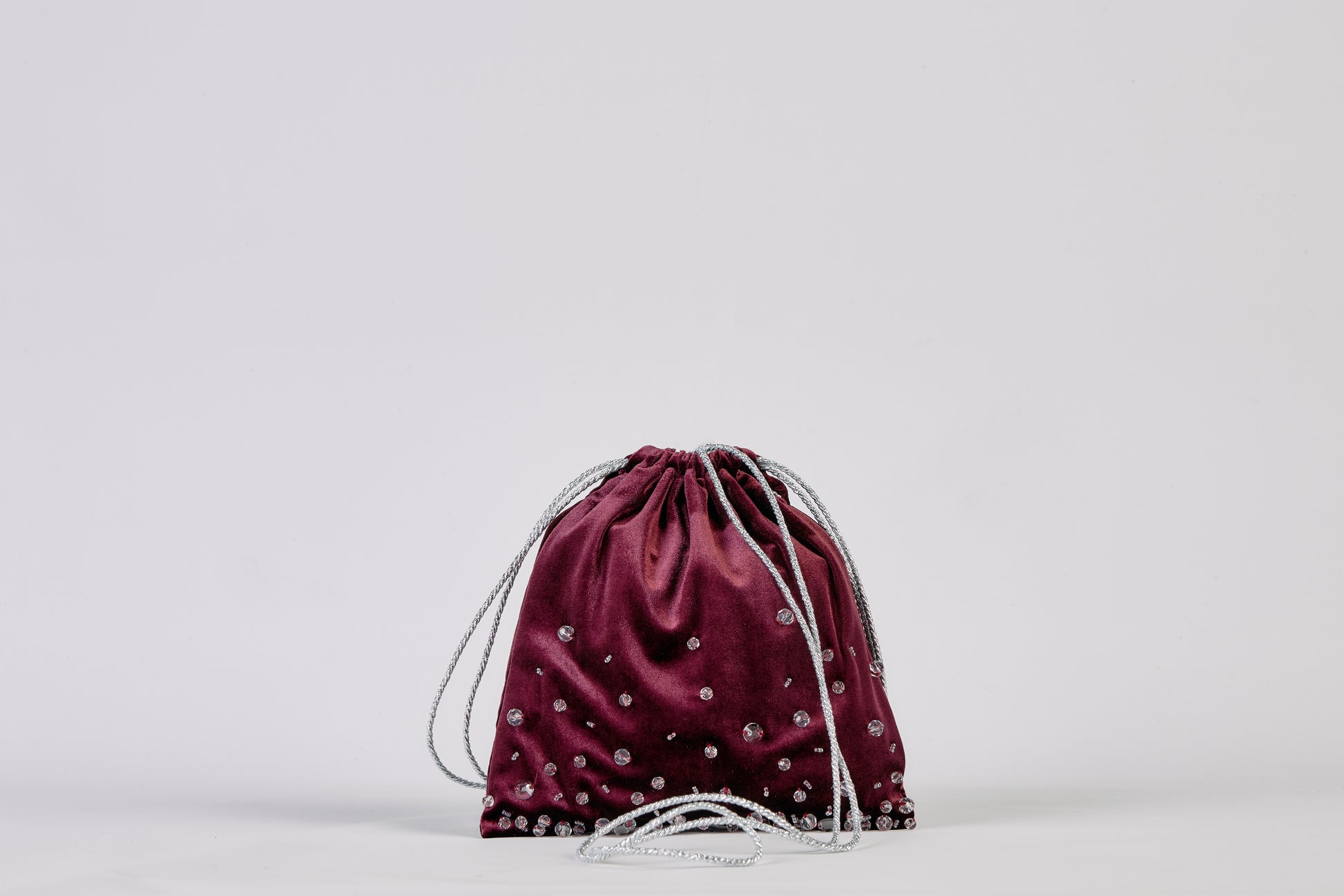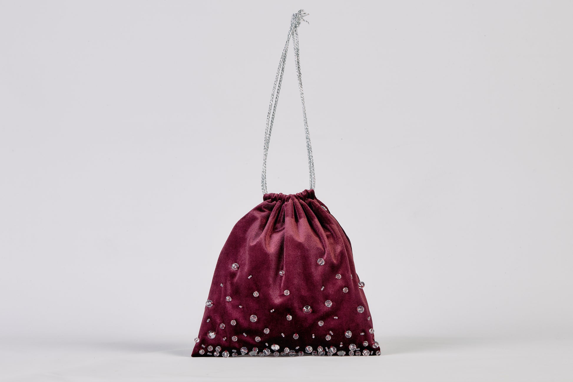 Sacchettino in velluto con applicazioni di cristalli e fodera in raso.