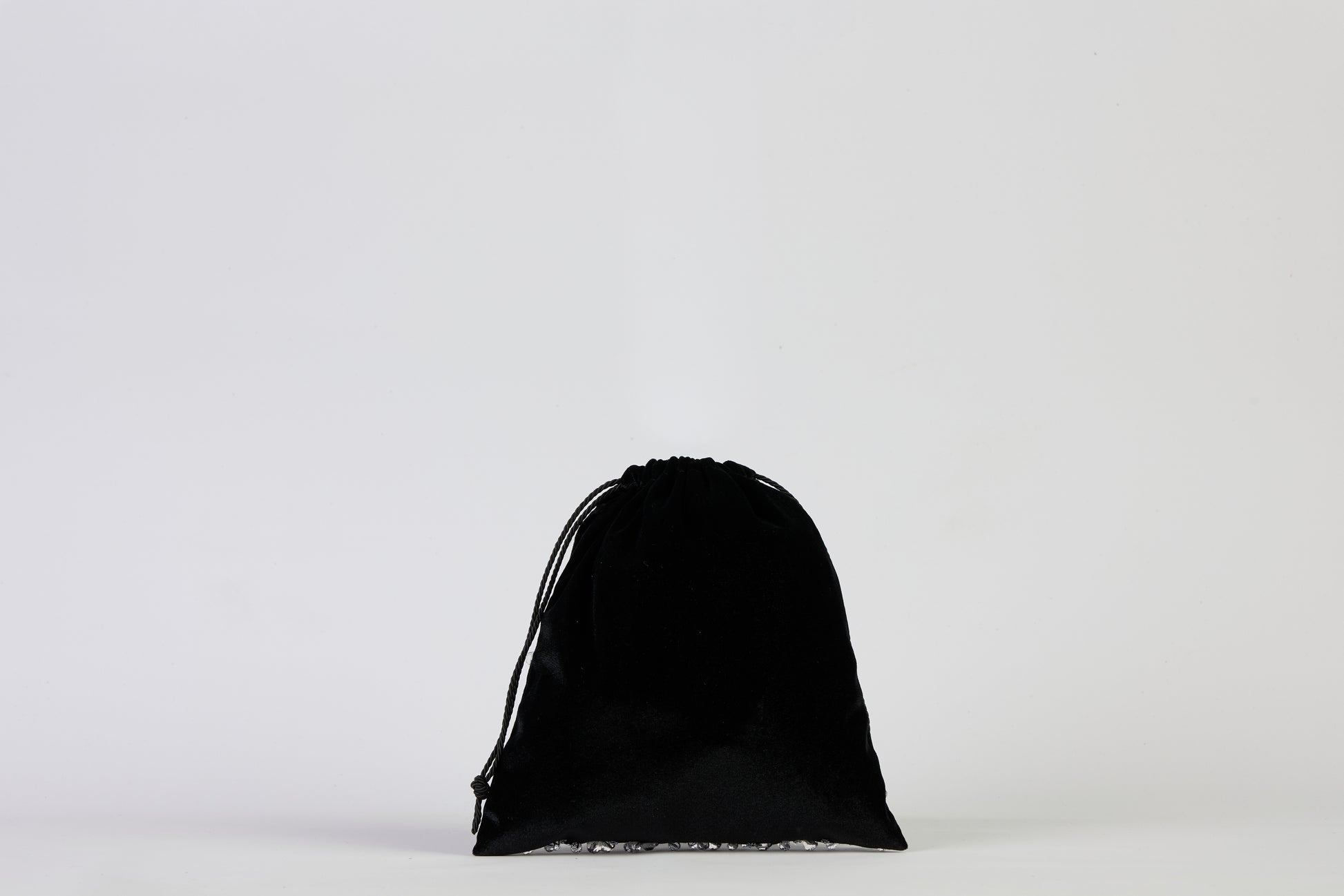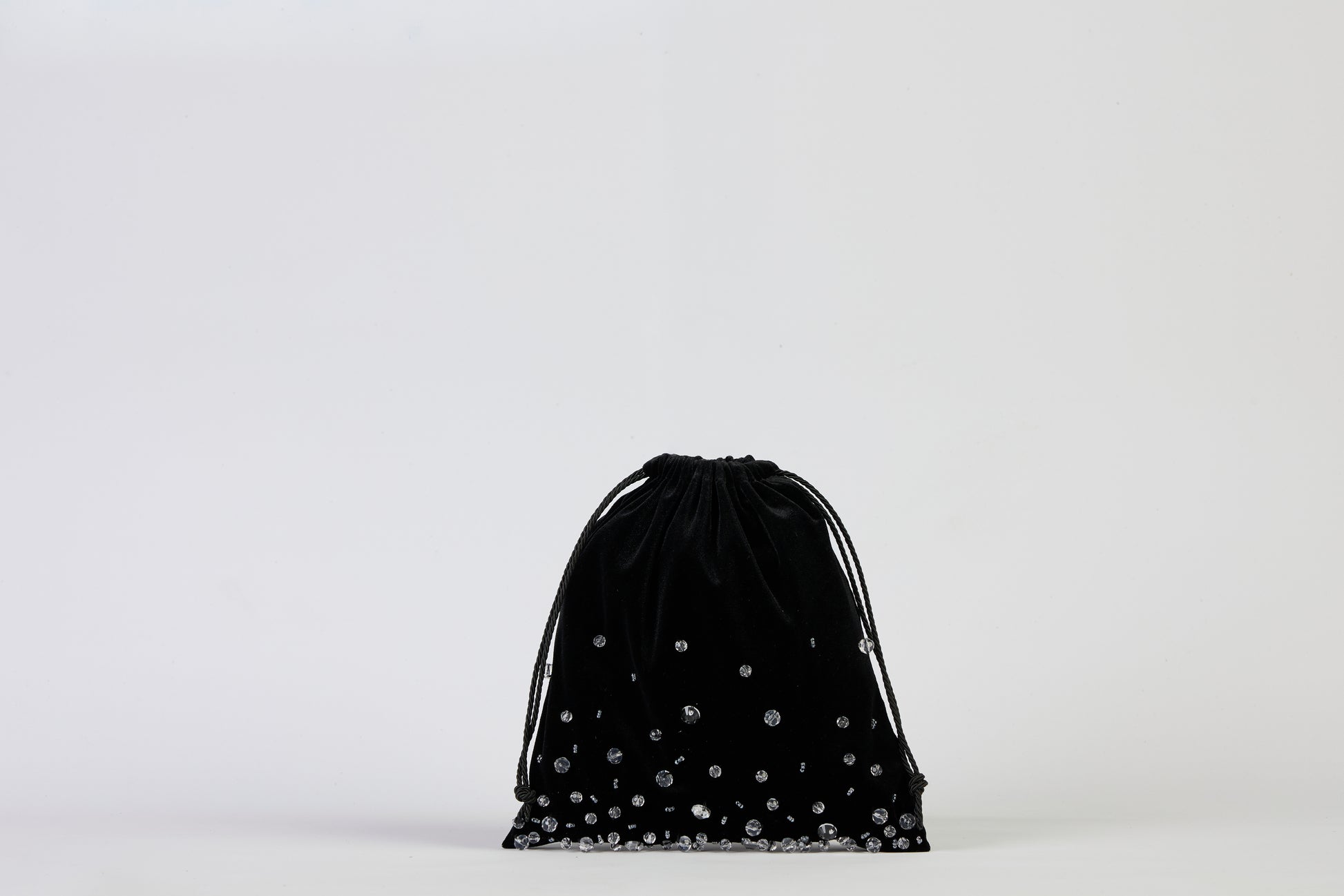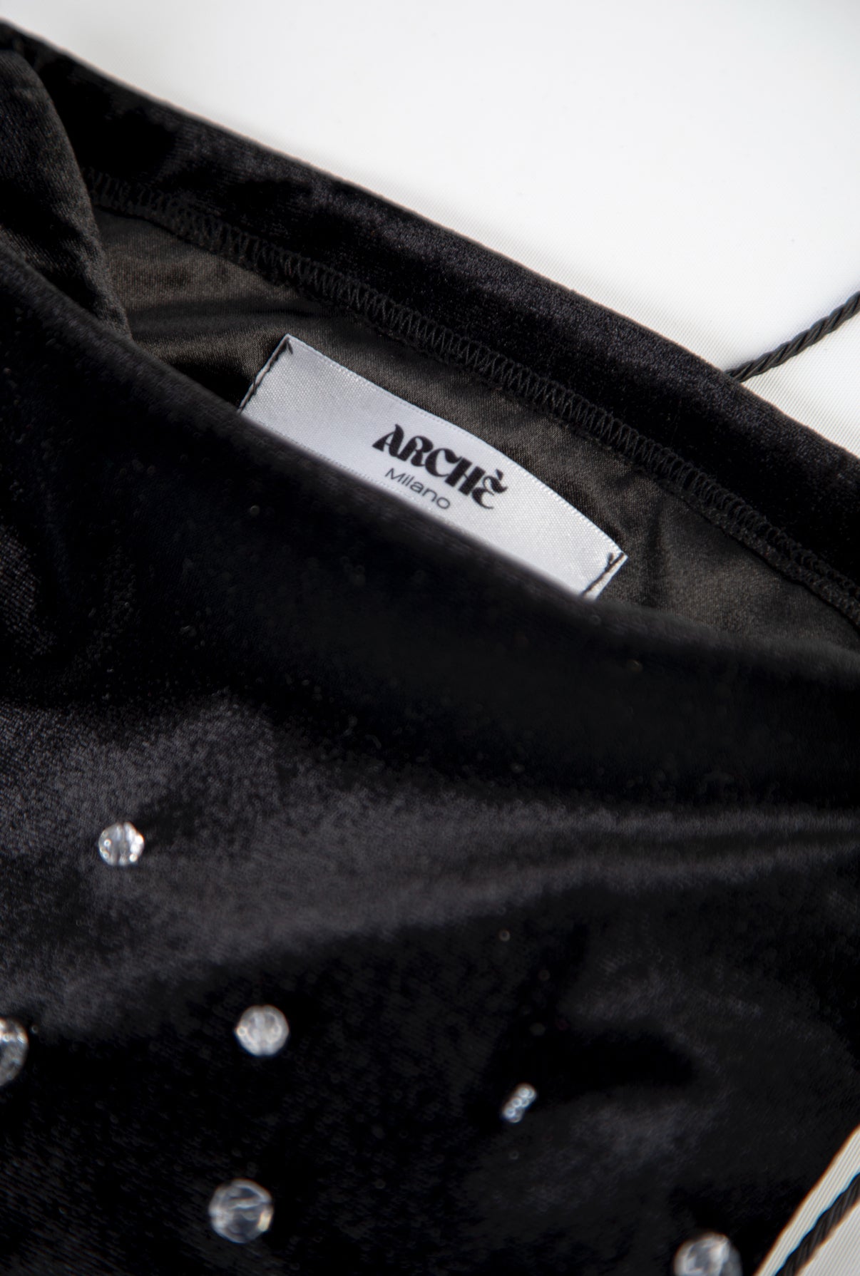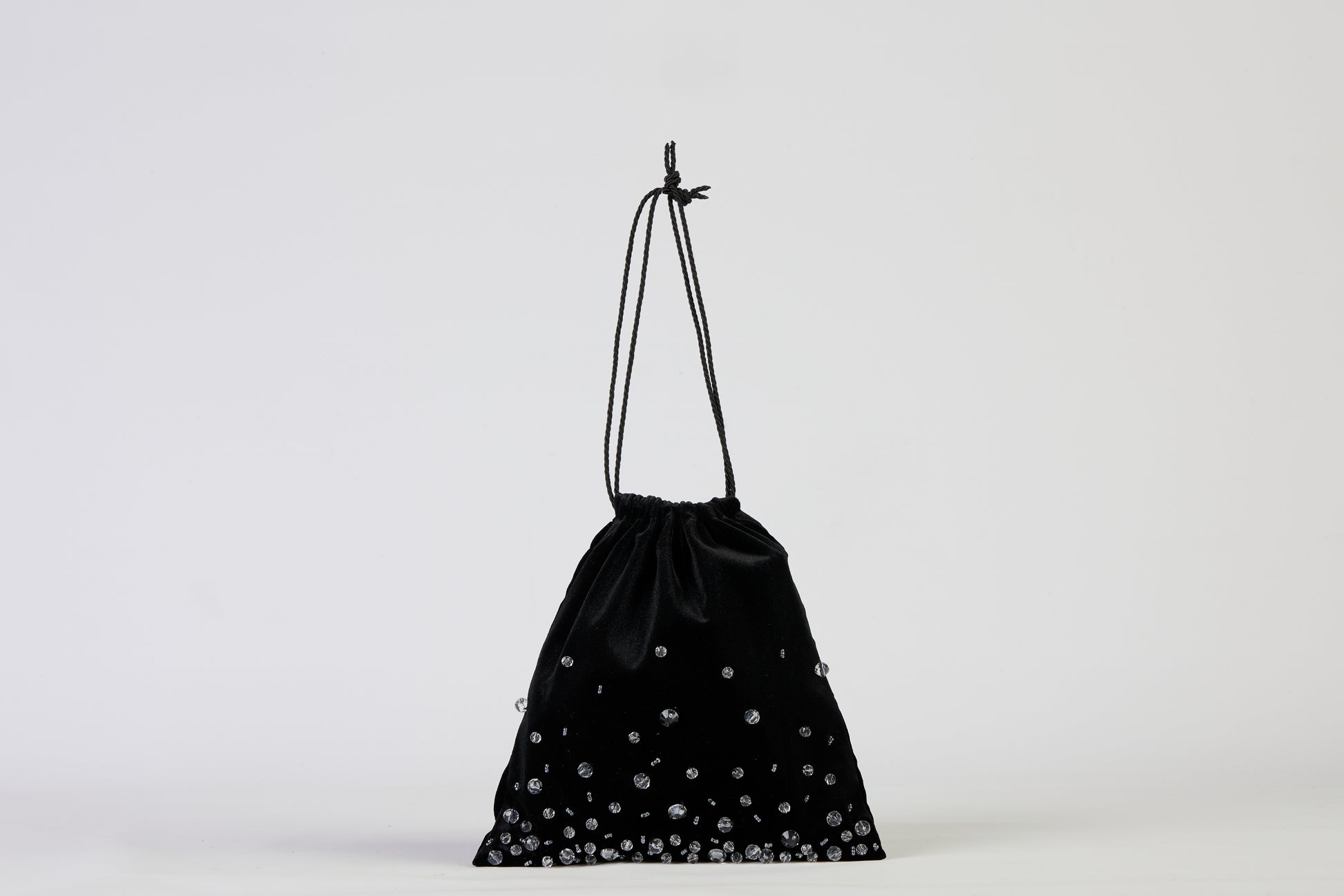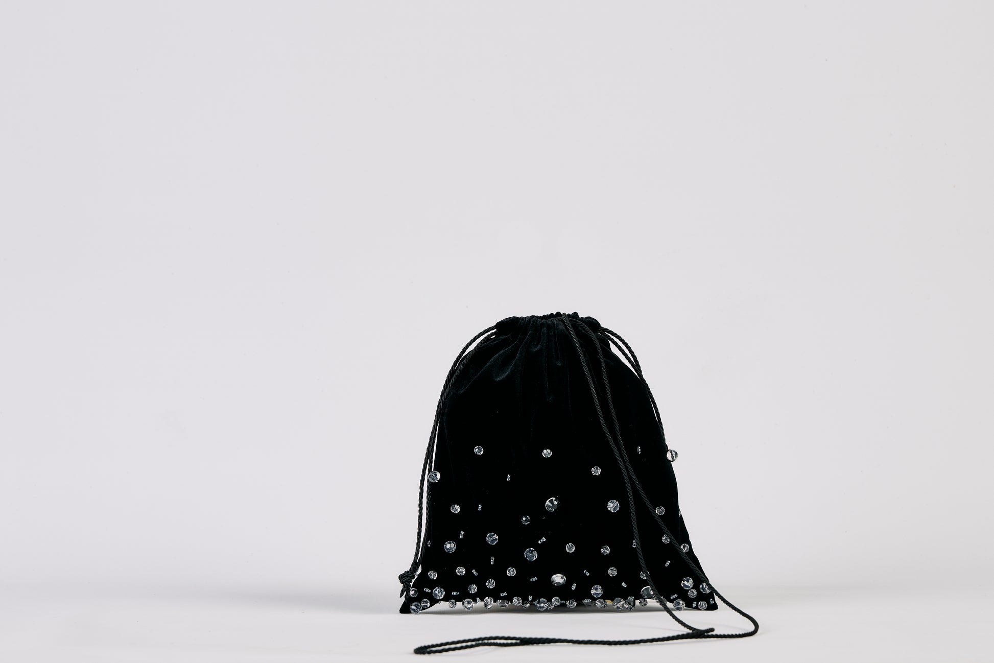 Sacchettino in velluto con applicazioni di cristalli e fodera in raso.