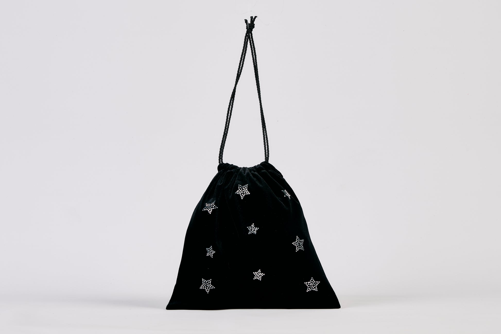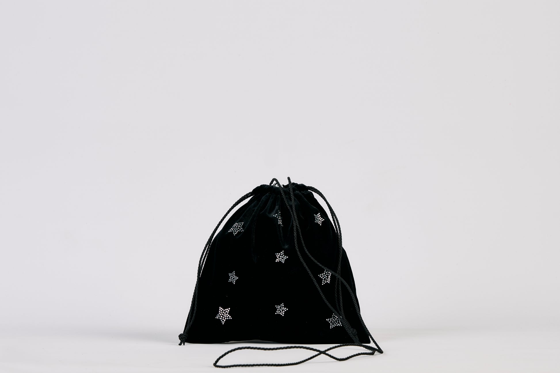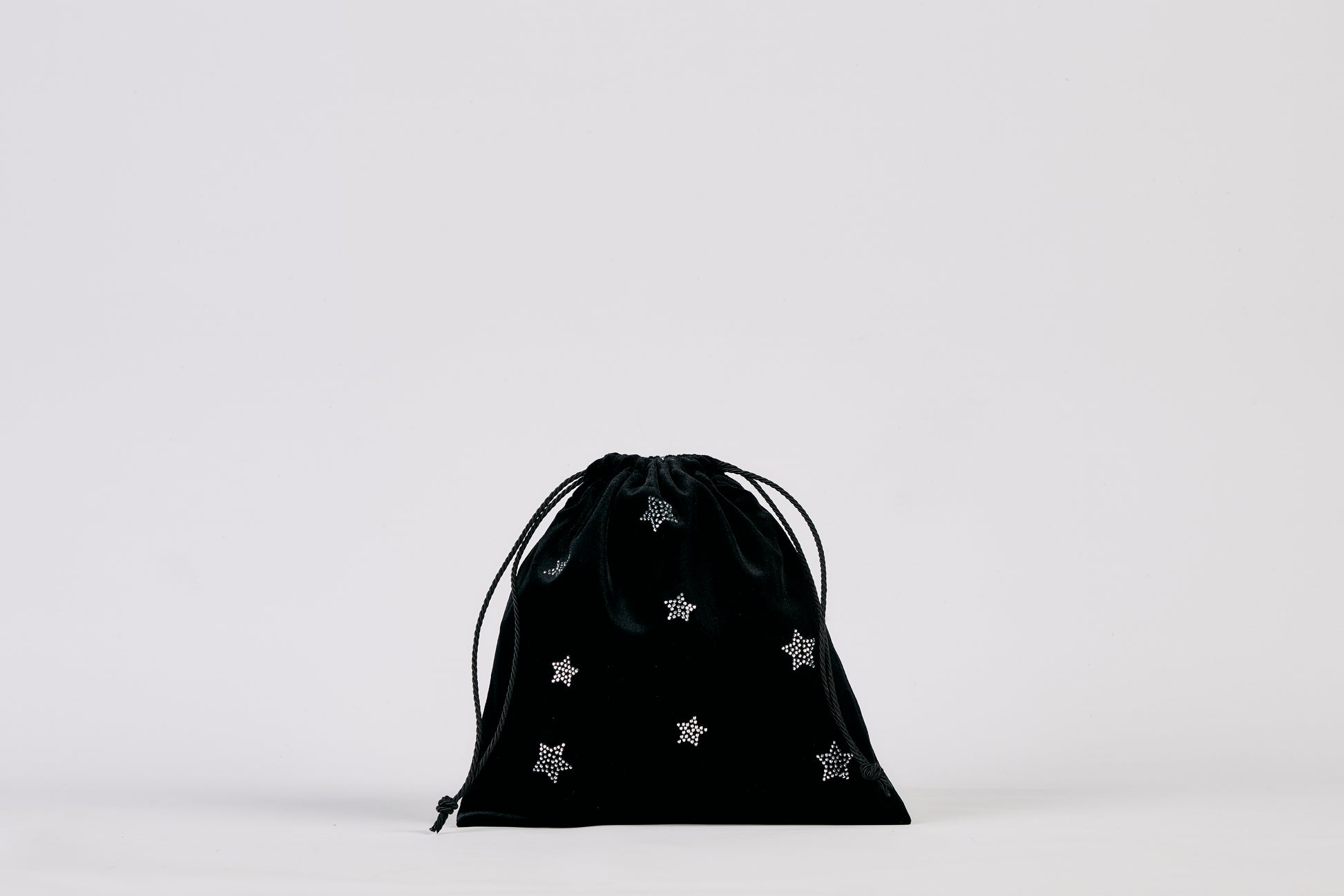 Sacchettino in velluto con applicazioni di strass a forma di stella e fodera in raso.